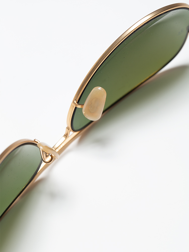 With a slim double bridge, minimalist metal construction and shiny colorway lens