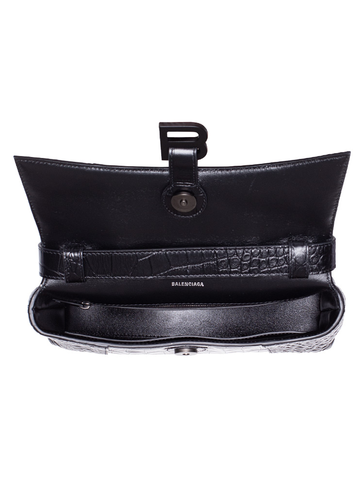 Croco Effect Downtown Hourglass XS Shoulder Bag Black