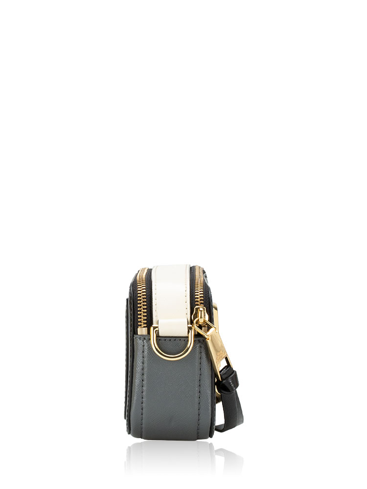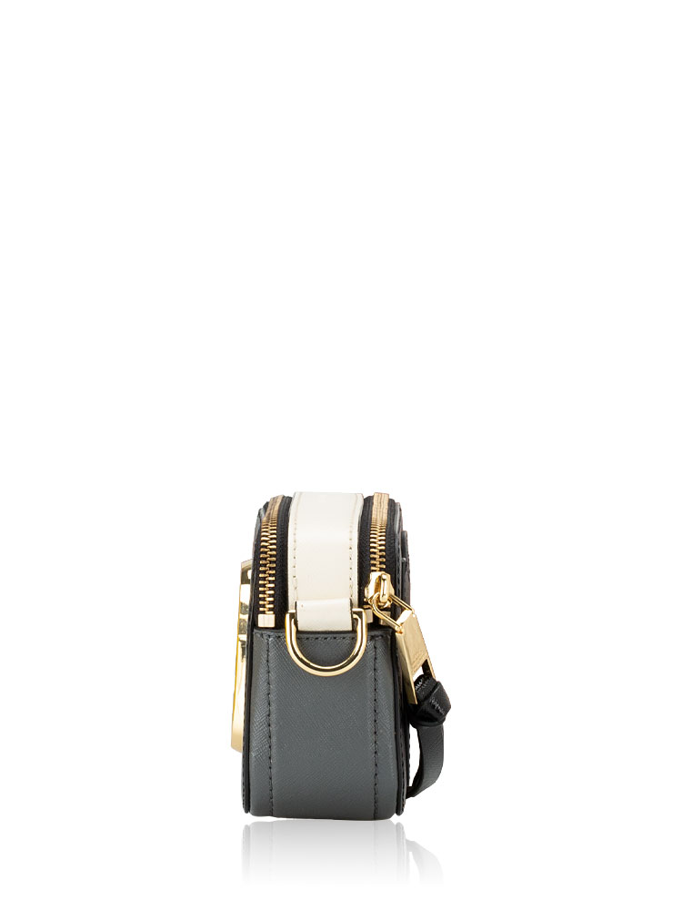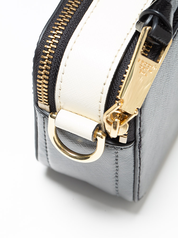 Made of saffiano leather. The bag features a double zip closure that opens to fabric lining with interior one slip pocket, adjustable and removable long strap.
