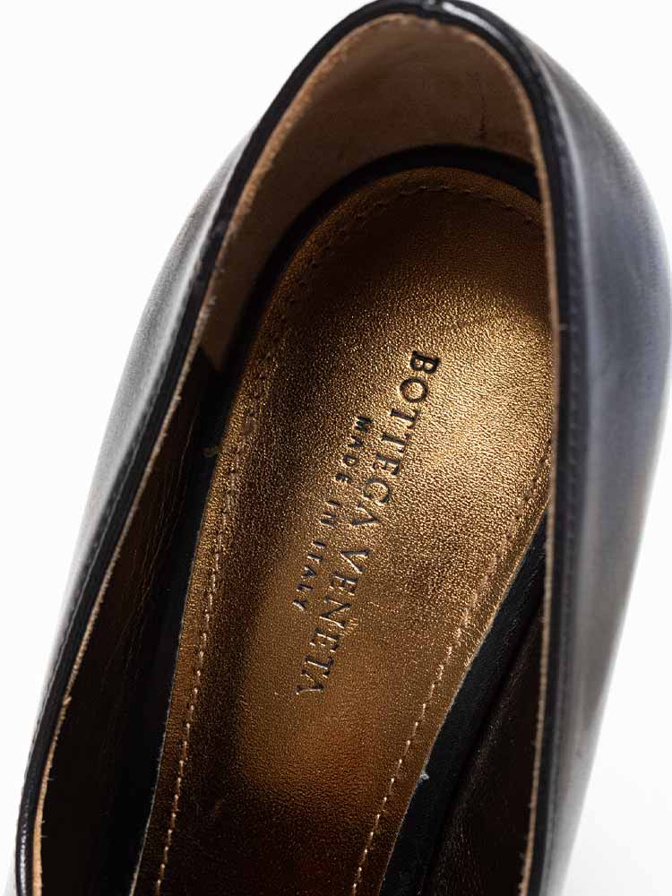 Crafted of calfskin with matching leather outsoles. These unique shoes feature a woven accents at both sides and have a 12 cm heel.