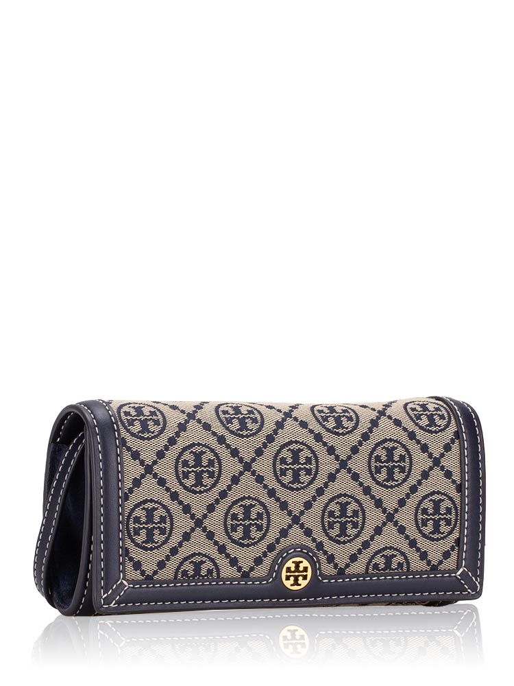 Made of Woven jacquard with smooth leather. The bag features an open magnetic flap closure, eight card slots, two slip pockets, two slip compartments, and one center zip coin case.