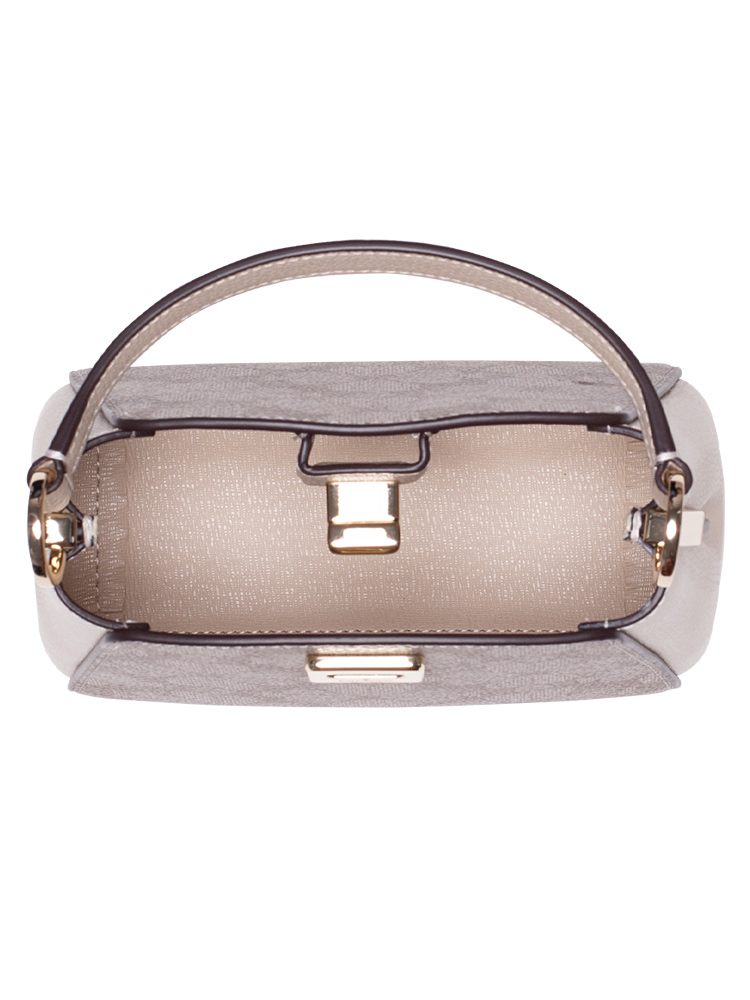 Made of PVC. The bag features a turn-lock closure that opens to PVC lining with top handle drop 8 cm , adjustable and removable long strap.