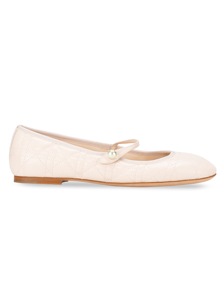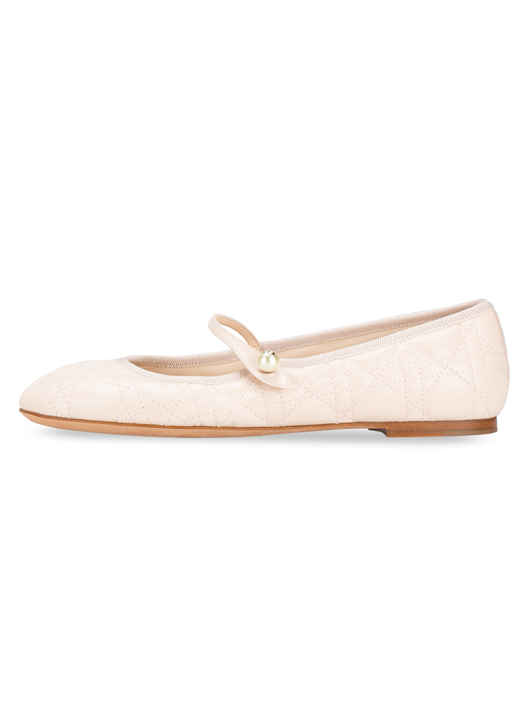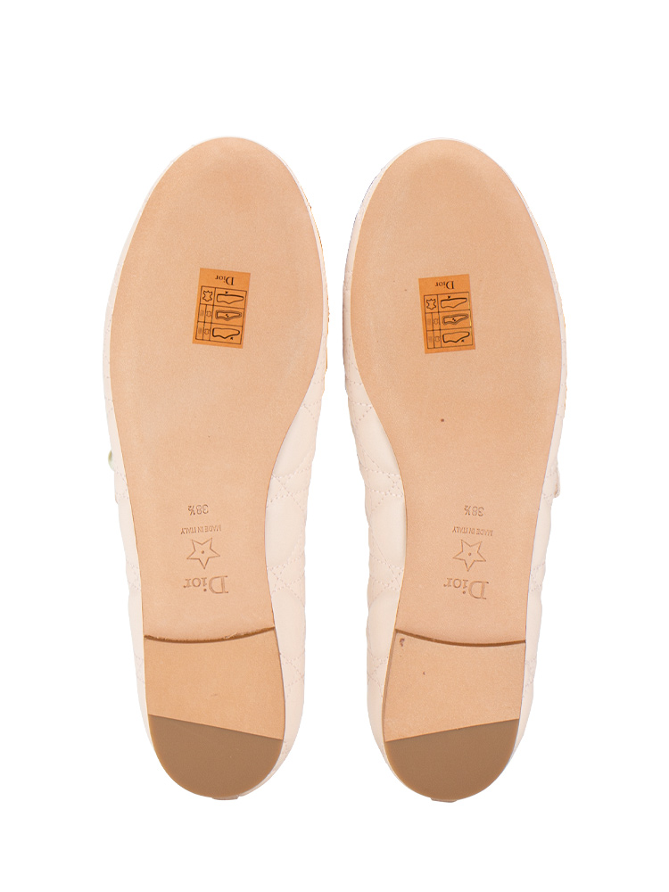 Calfskin Cannage D Strap Ballet Flat Nude Sz 38.5