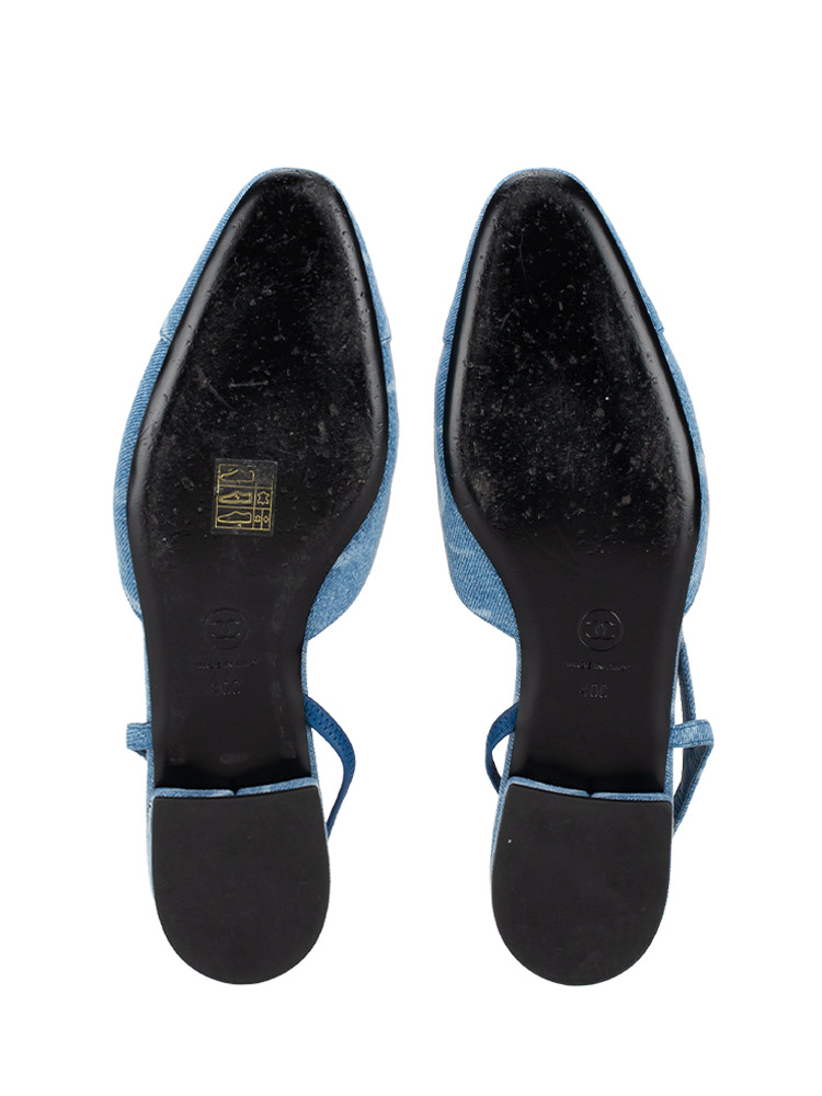 Denim Cap Toe CC Slingback Flats Light Blue Sz 40