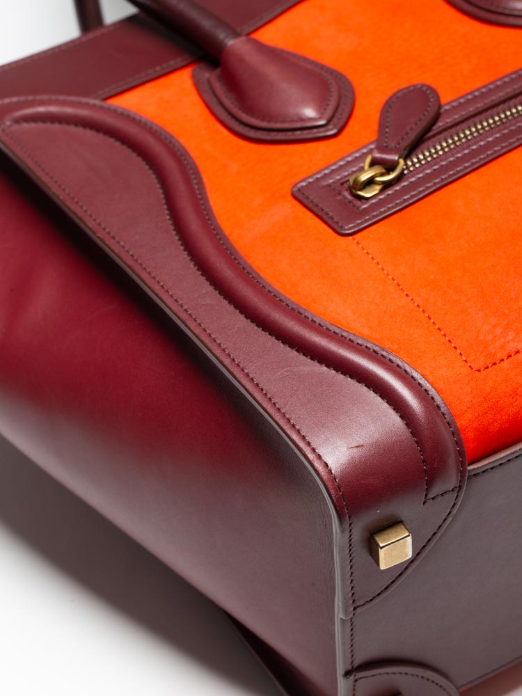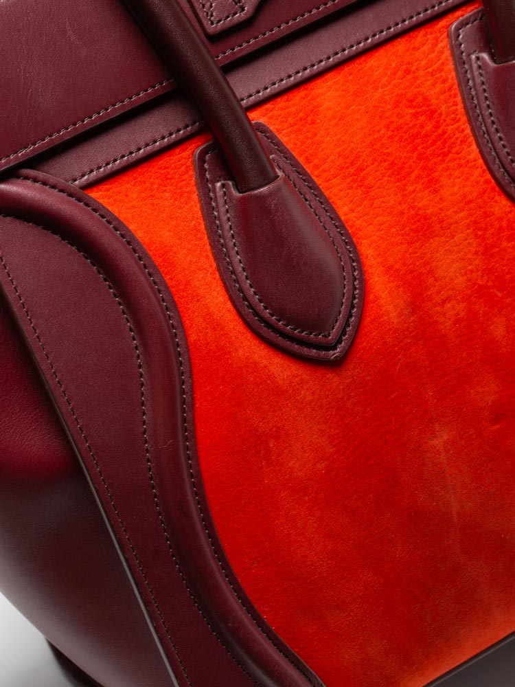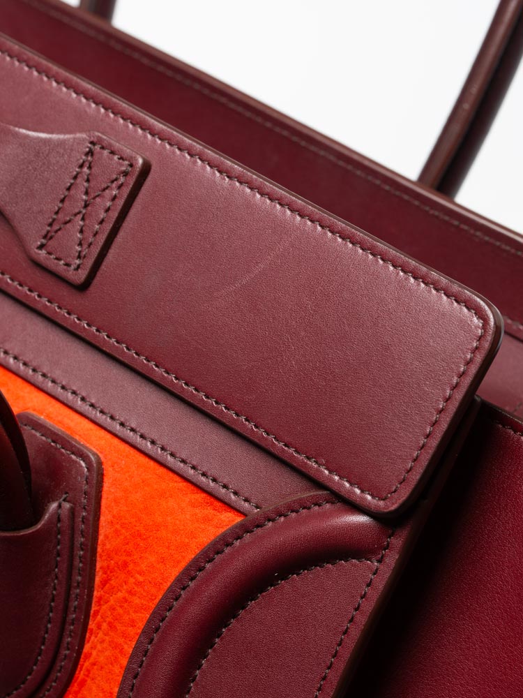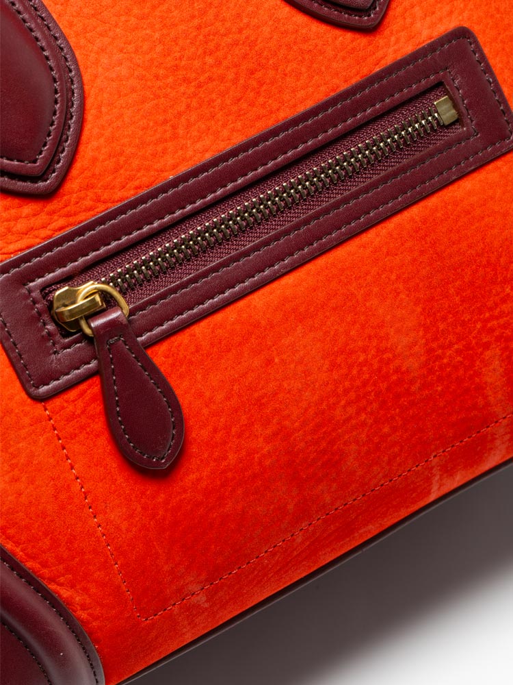 Grained Calfskin Nubuck Micro Tri-Color Luggage Vermillion