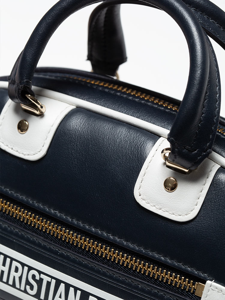 Calfskin Dior Vibe Micro Bowling Bag Blue White