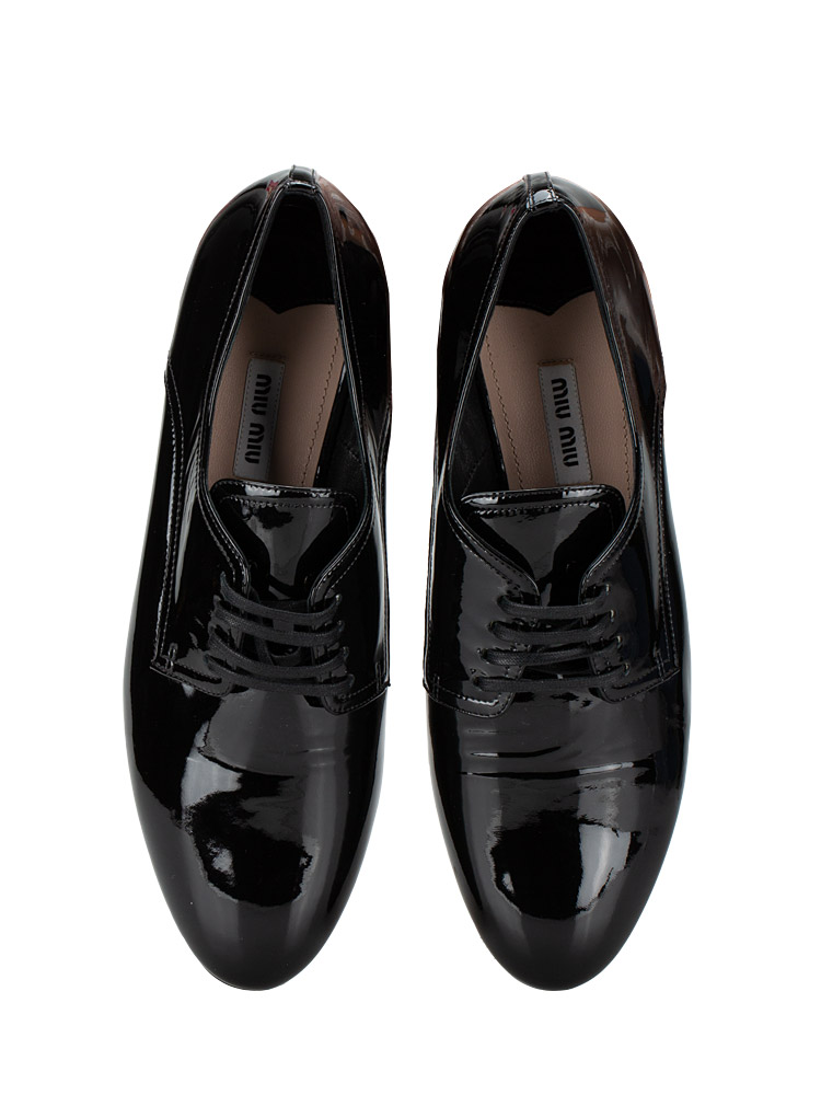 Patent Leather Lace Up Derby Shoes Black Sz 39