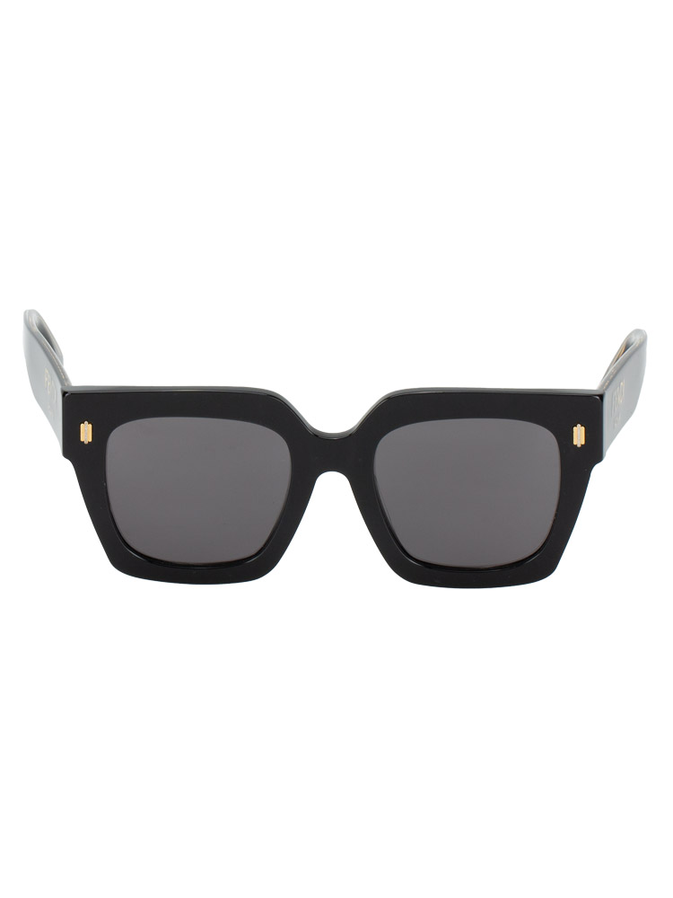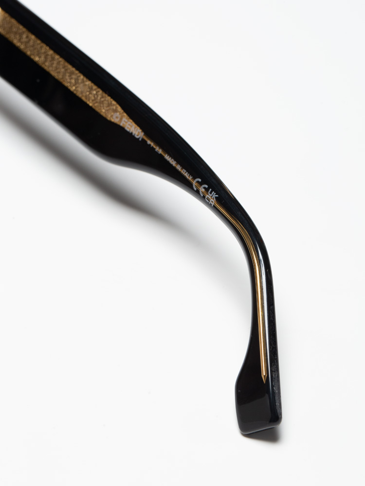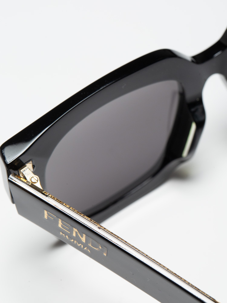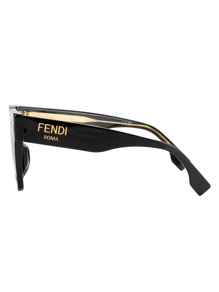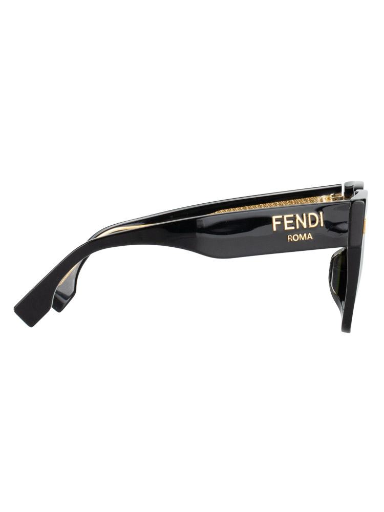 these sunglasses are crafted of acetate material. It features Fendi Roma lettering at temple and black lens.