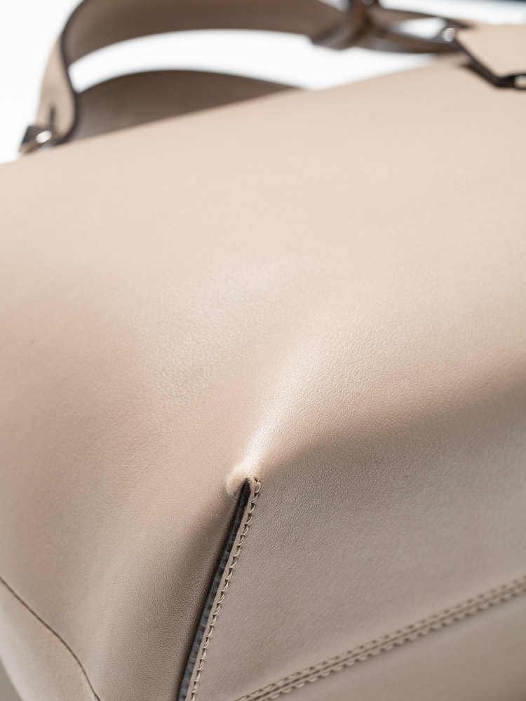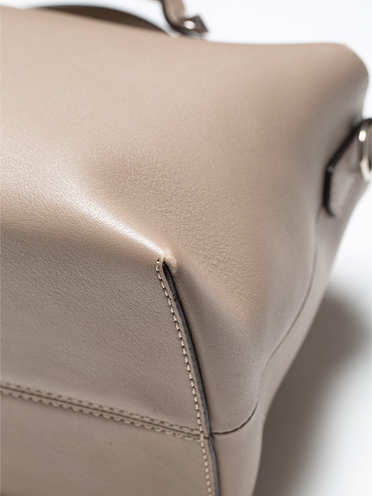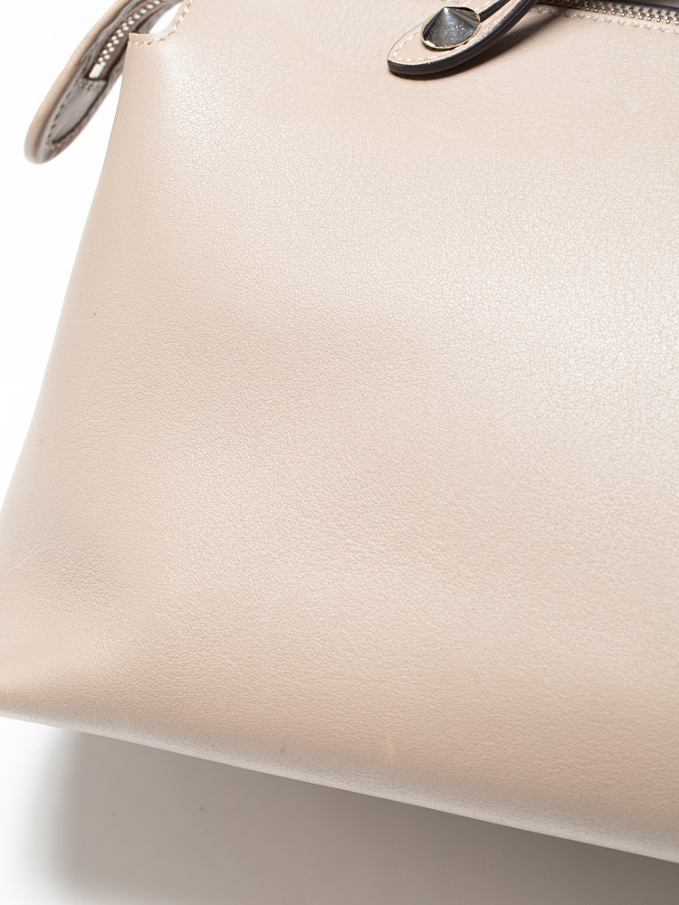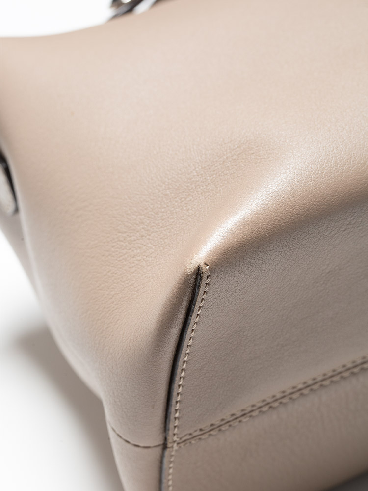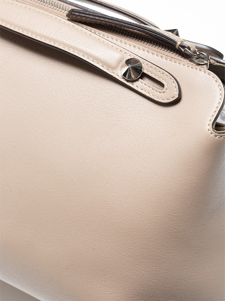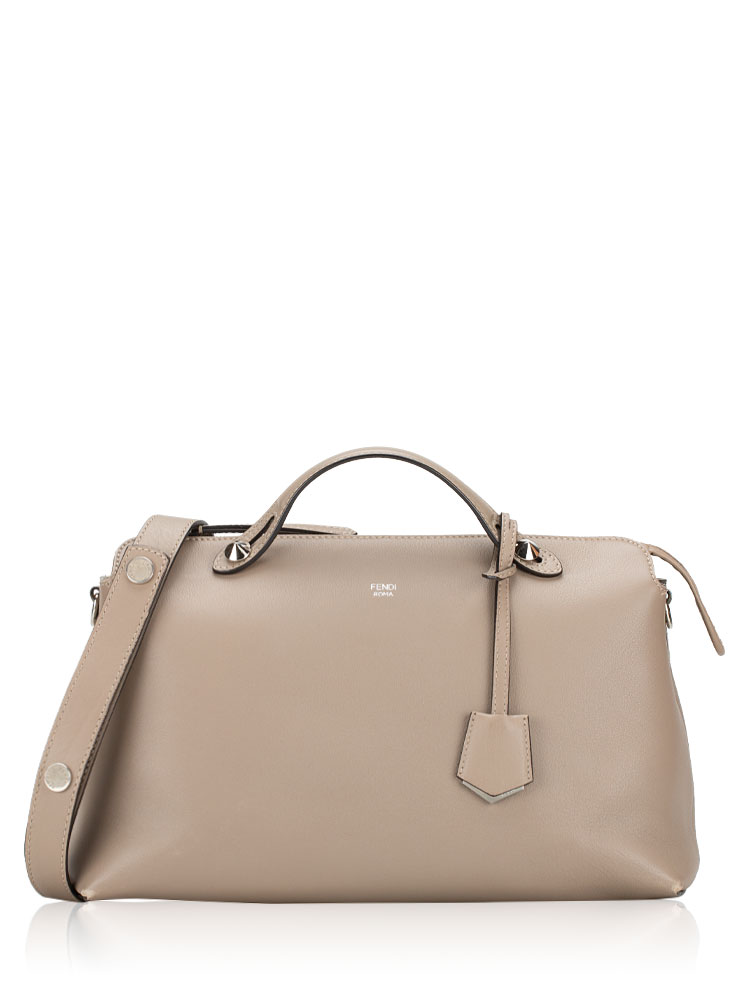 This bag is crafted of calfskin leather material. It features double top handles, an optional adjustable shoulder strap, and Fendi stamp at front. The top zipper opens to a jacquard lining with patch and zipper pockets.