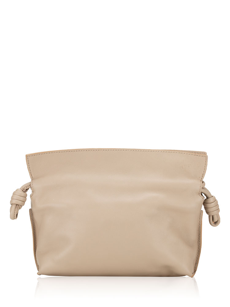 Calfskin Flamenco Knot Clutch with Strap Sand