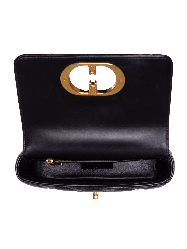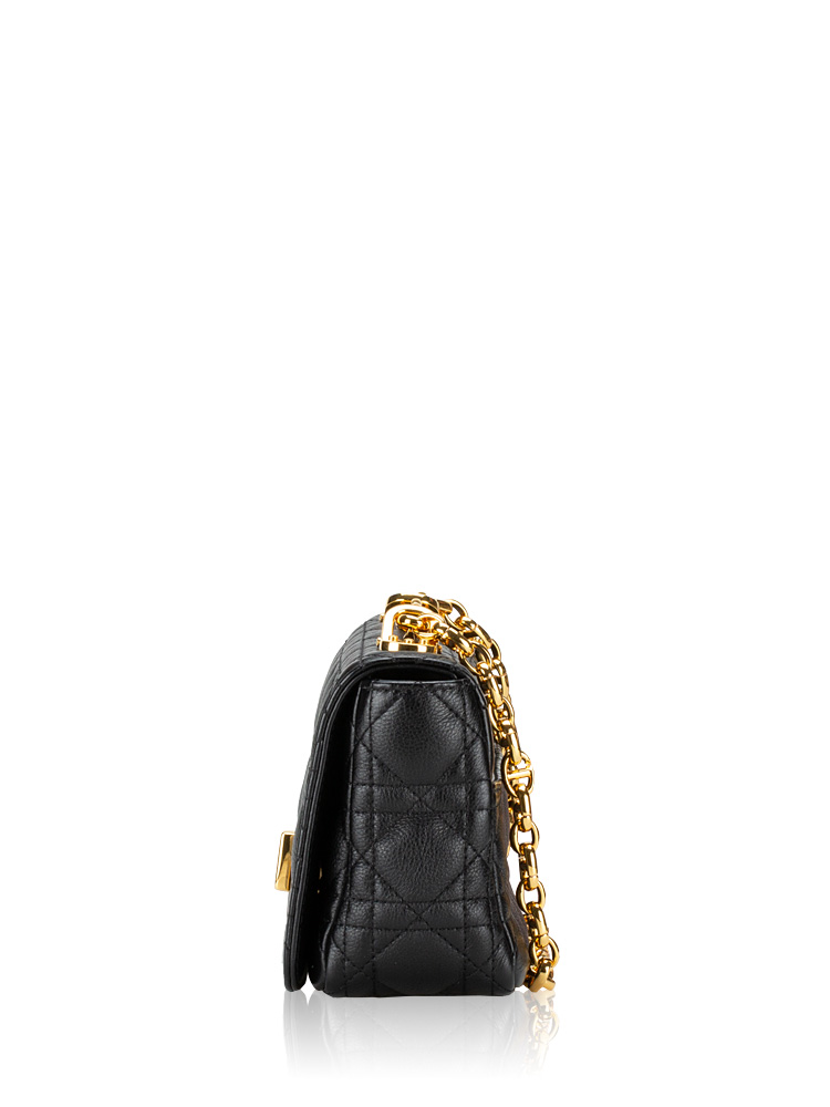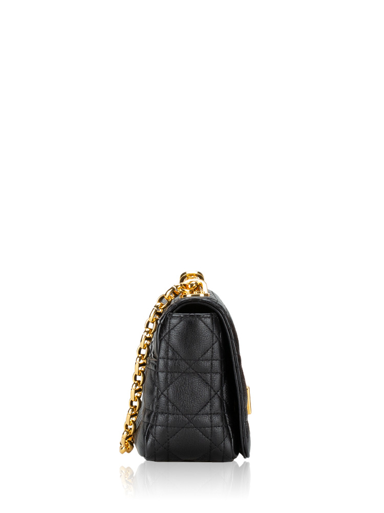 Calfskin Cannage Caro Small Shoulder Bag Black