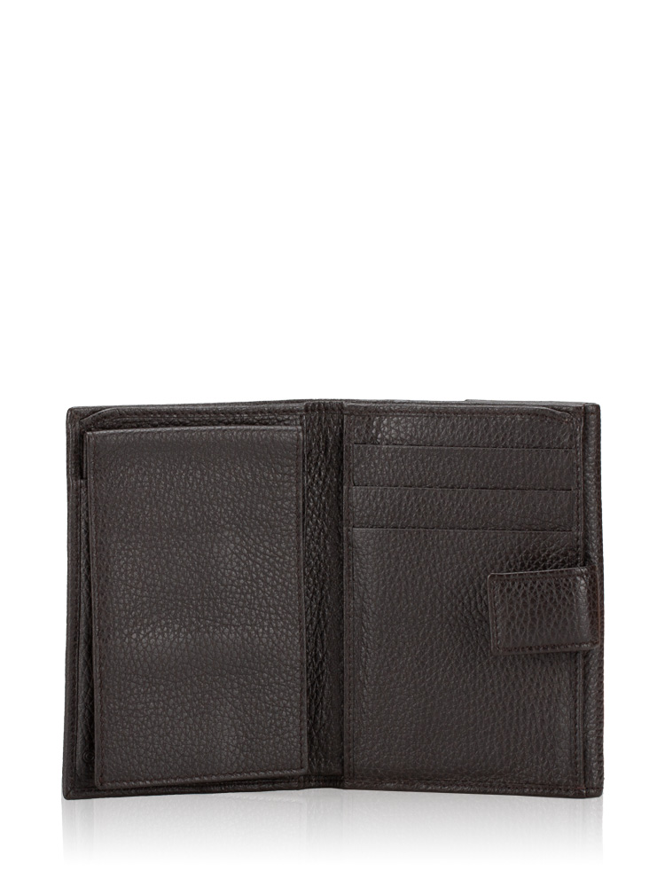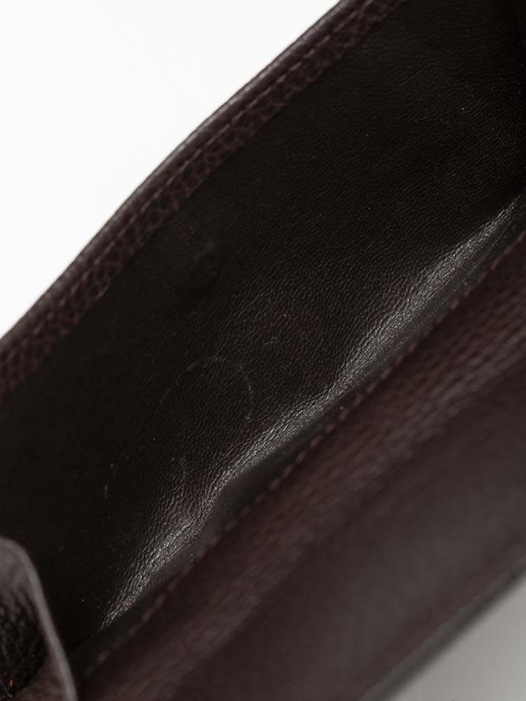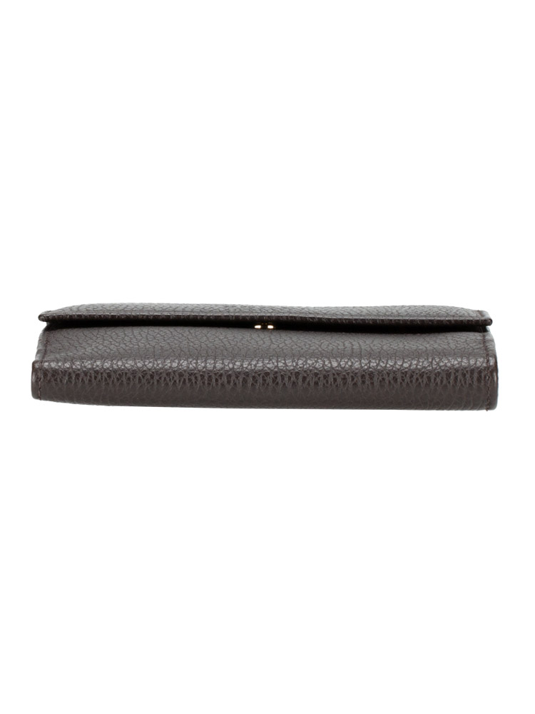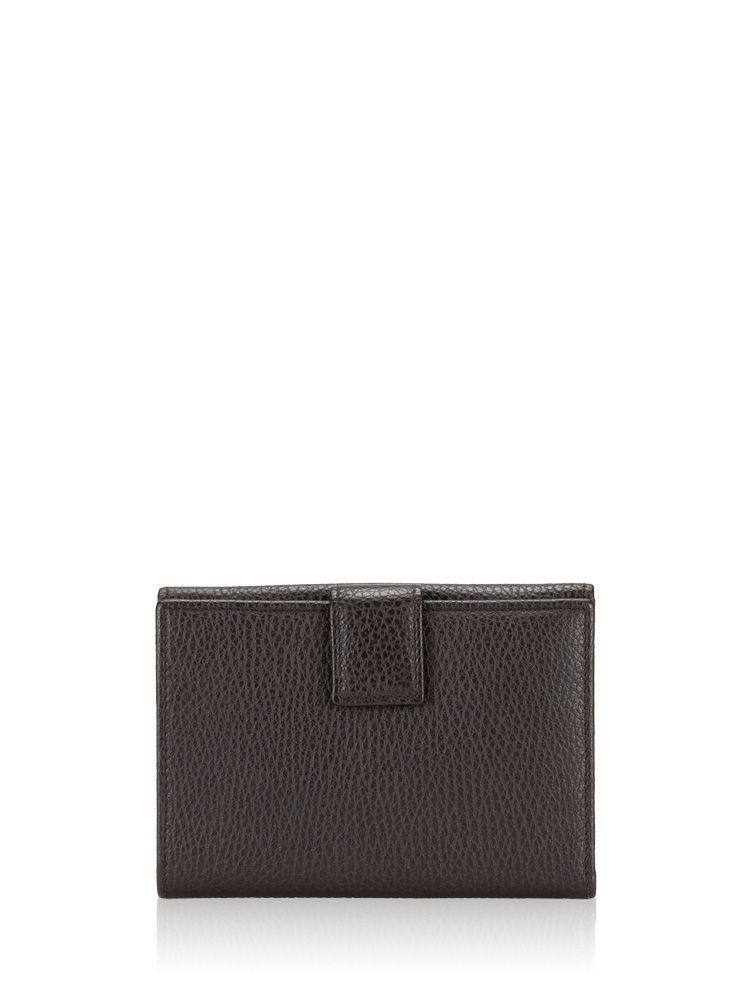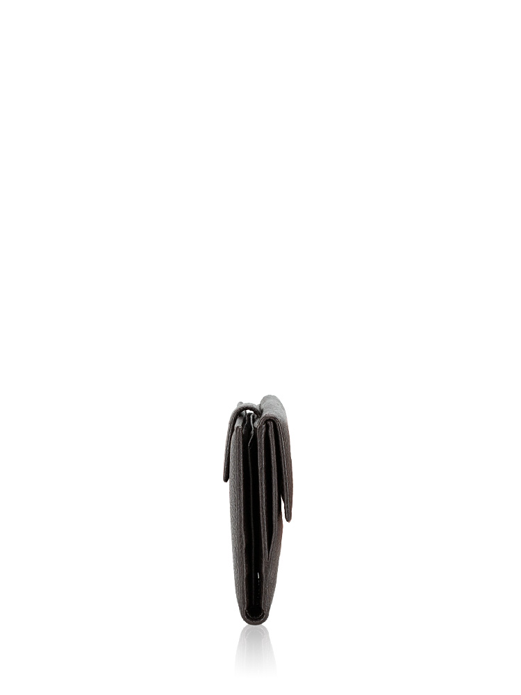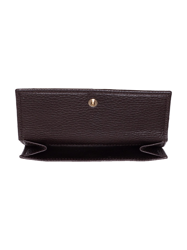 This wallet is crafted of leather trim. Features a front coin compartment and opens to a card and money compartment.