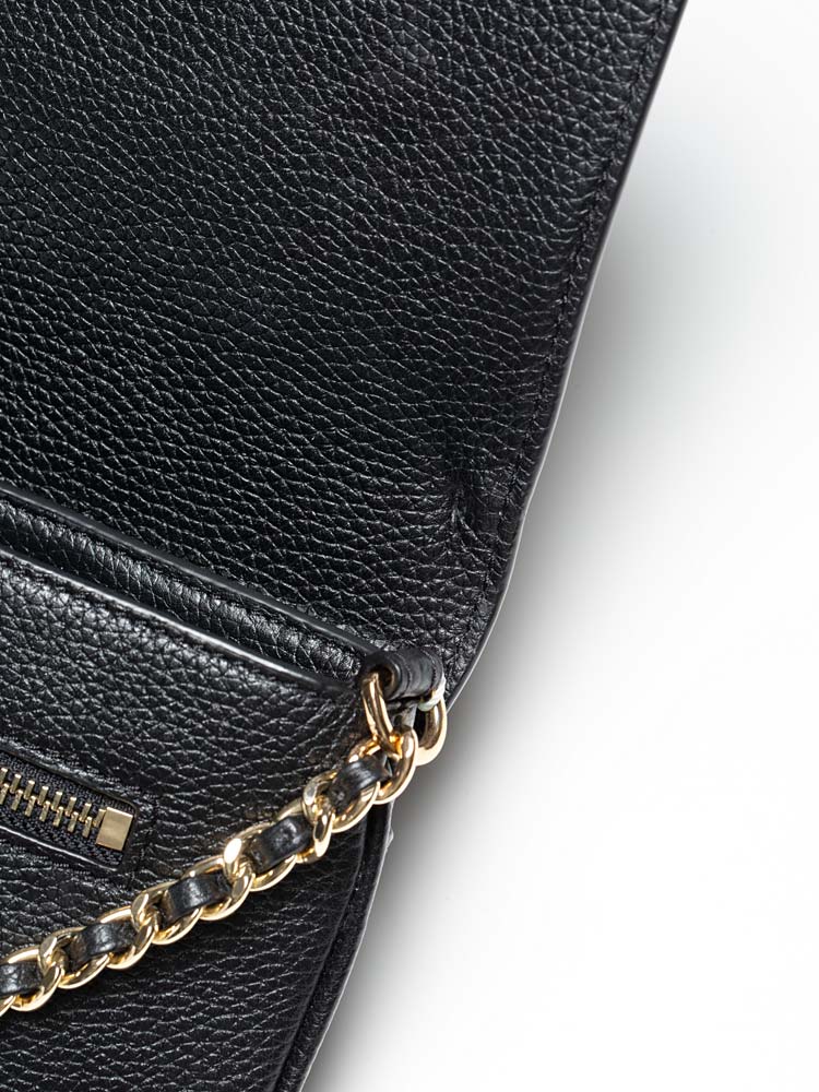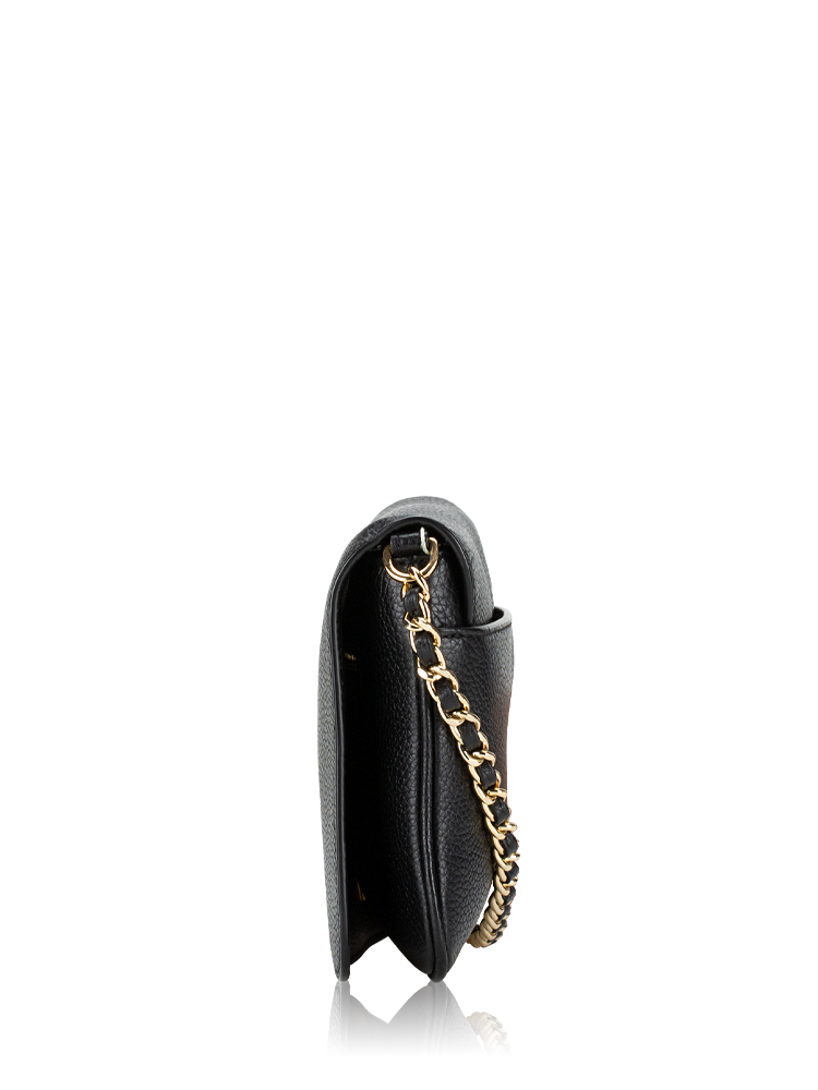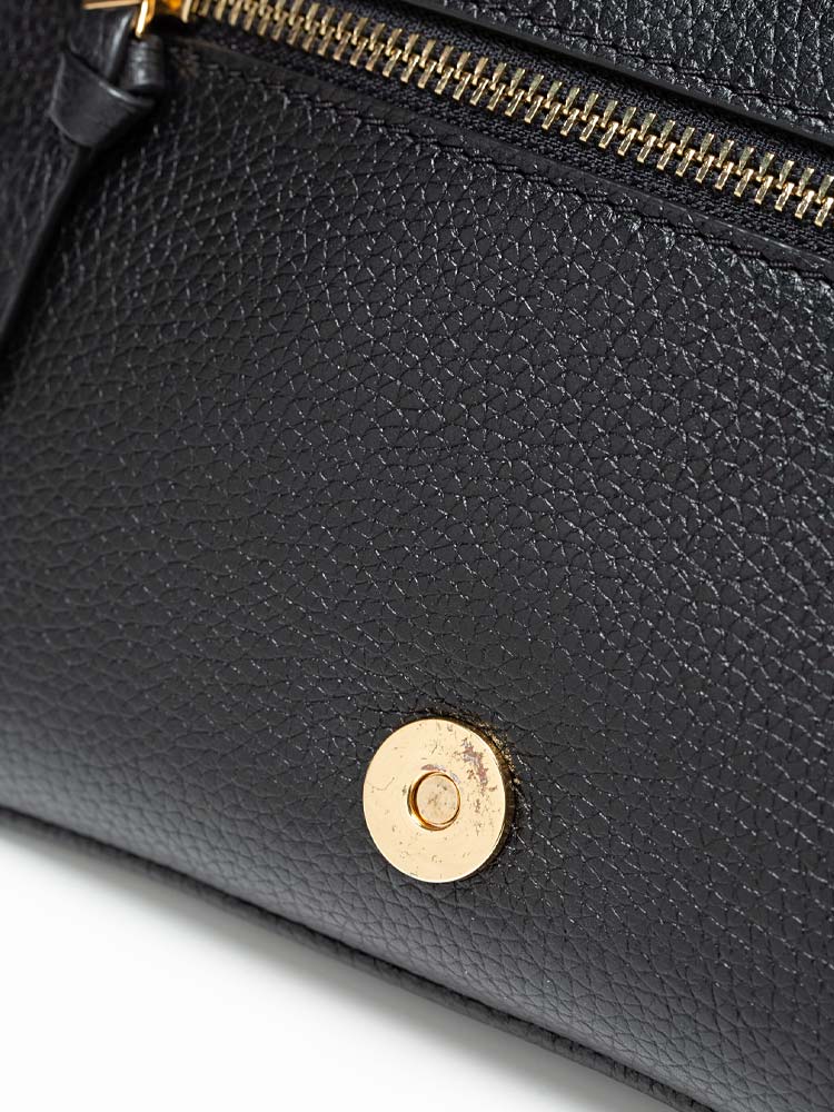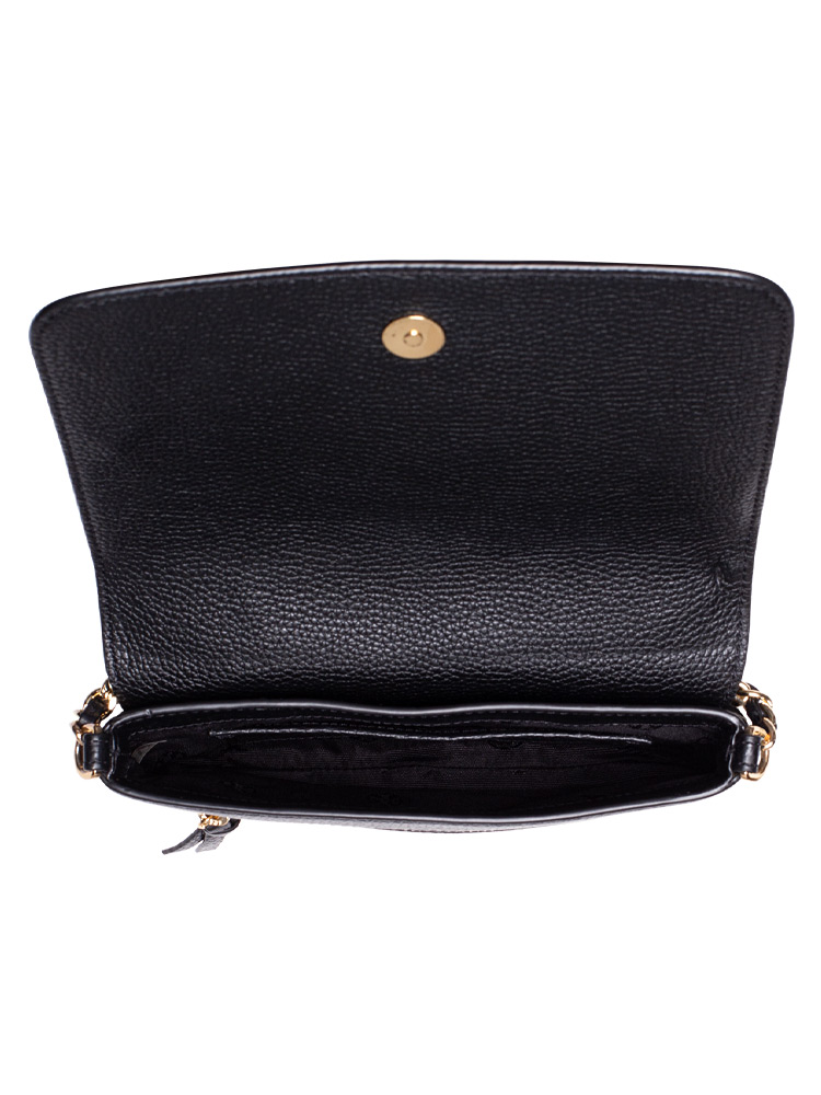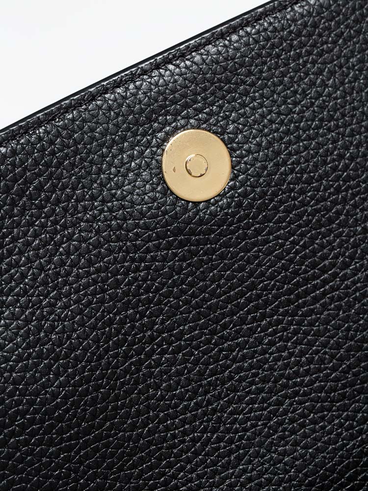 Made of pebble leather. The bag features a magnetic closure that opens to signature jacquard lining with interior two slip pockets, one zip pocket at front and exterior one slip pocket at back with magnetic closure.