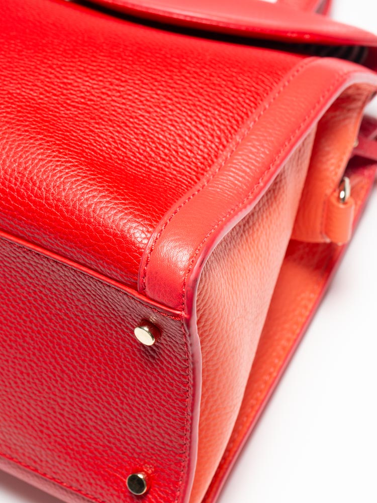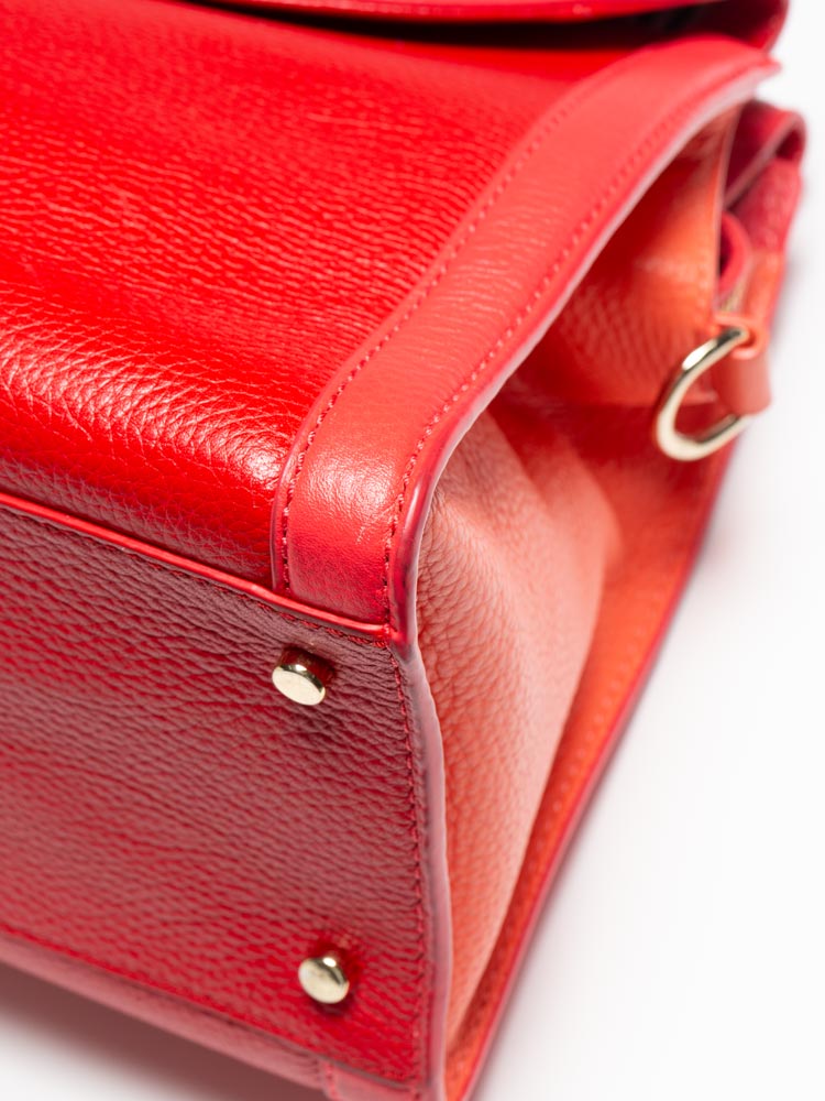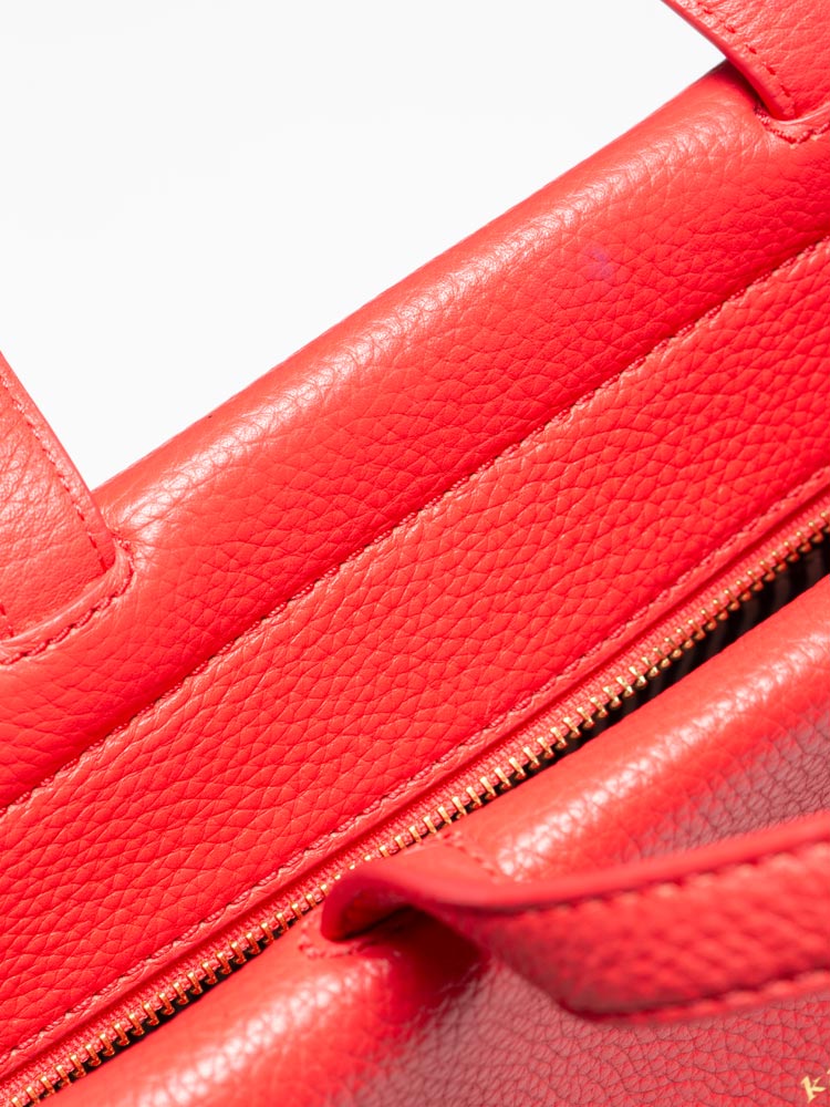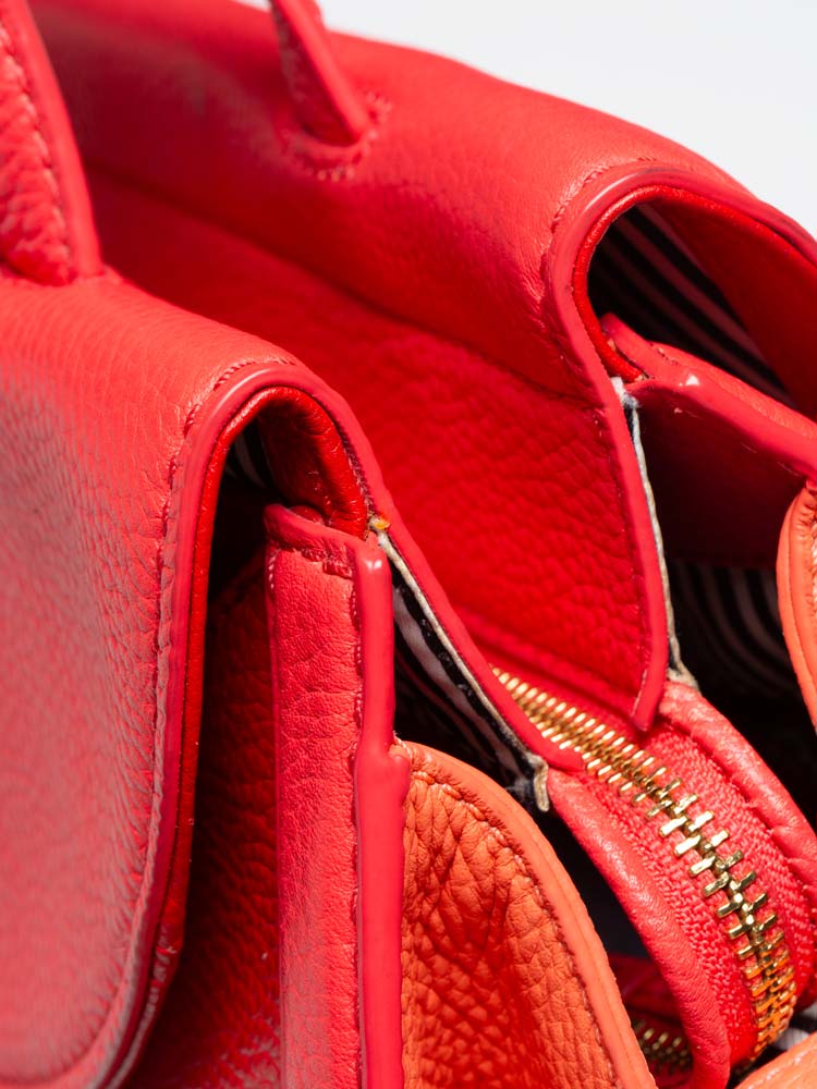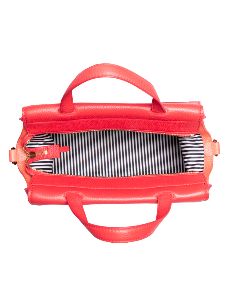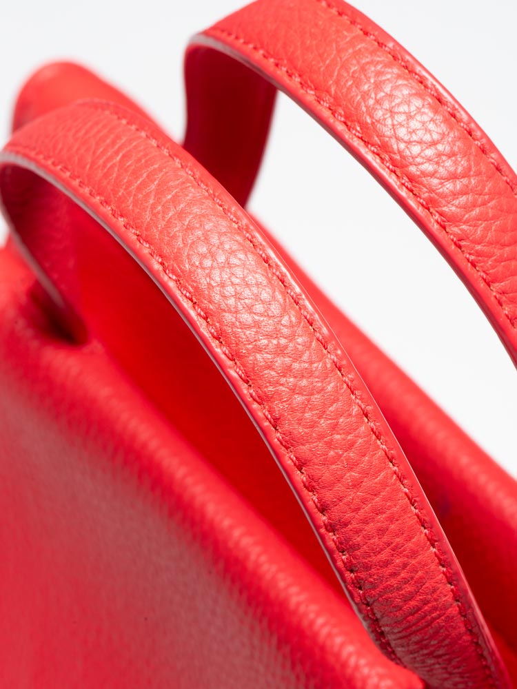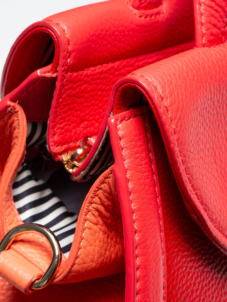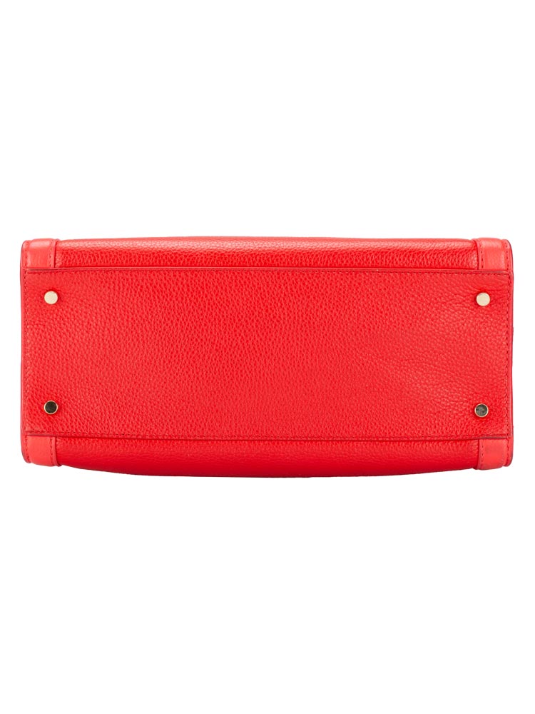 Made of pebble leather. The bag features a zip closure that opens to jacquard lining with interior one zip pocket, two slip pockets and exterior two slip compartments with magnetic closure.