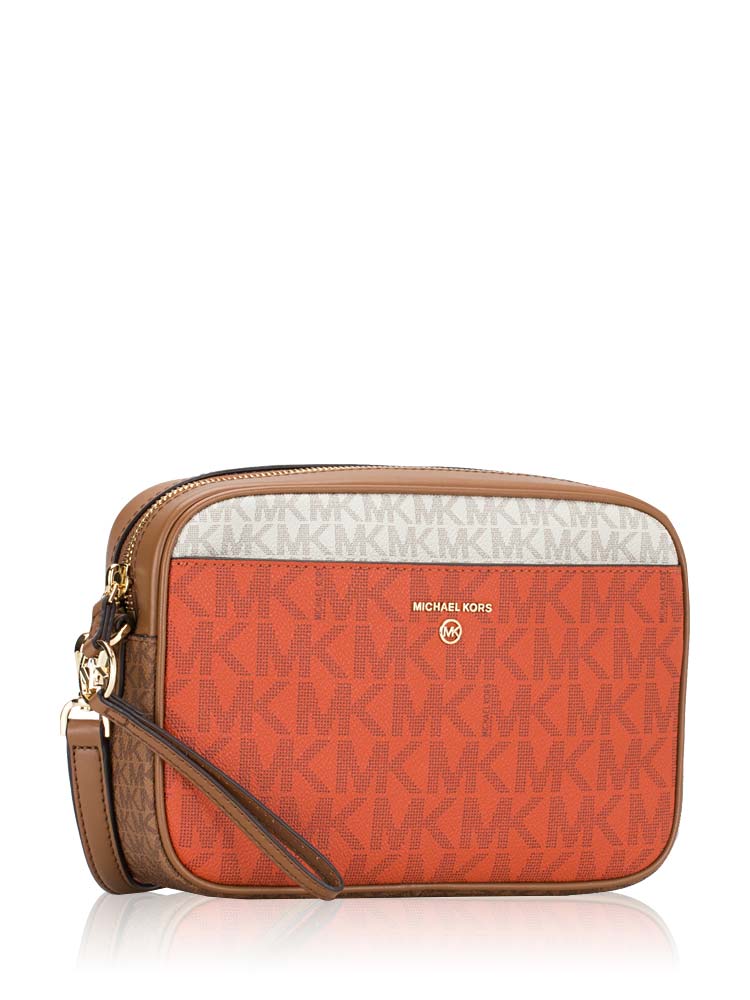 Jet Set Charm Signature Large Camera Crossbody Deep orange Multi