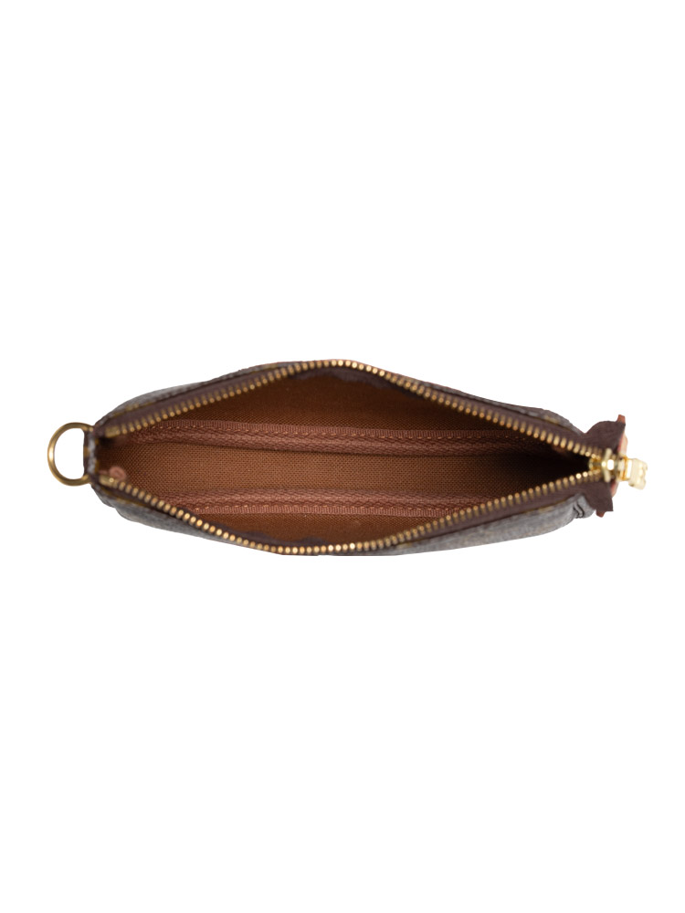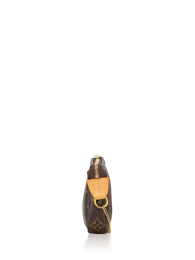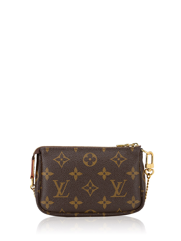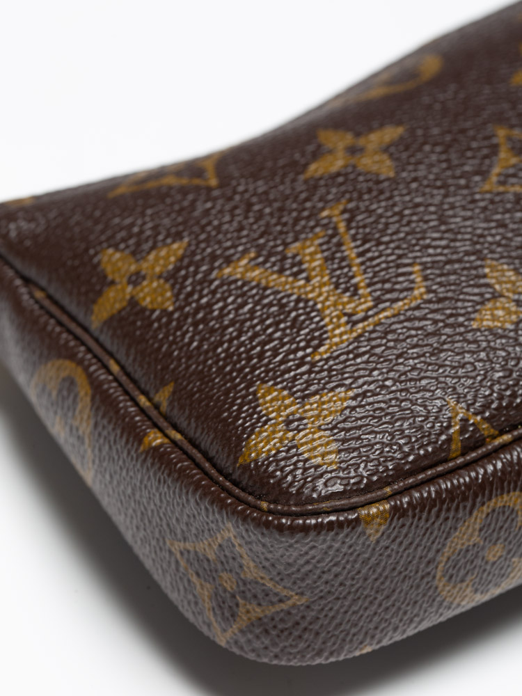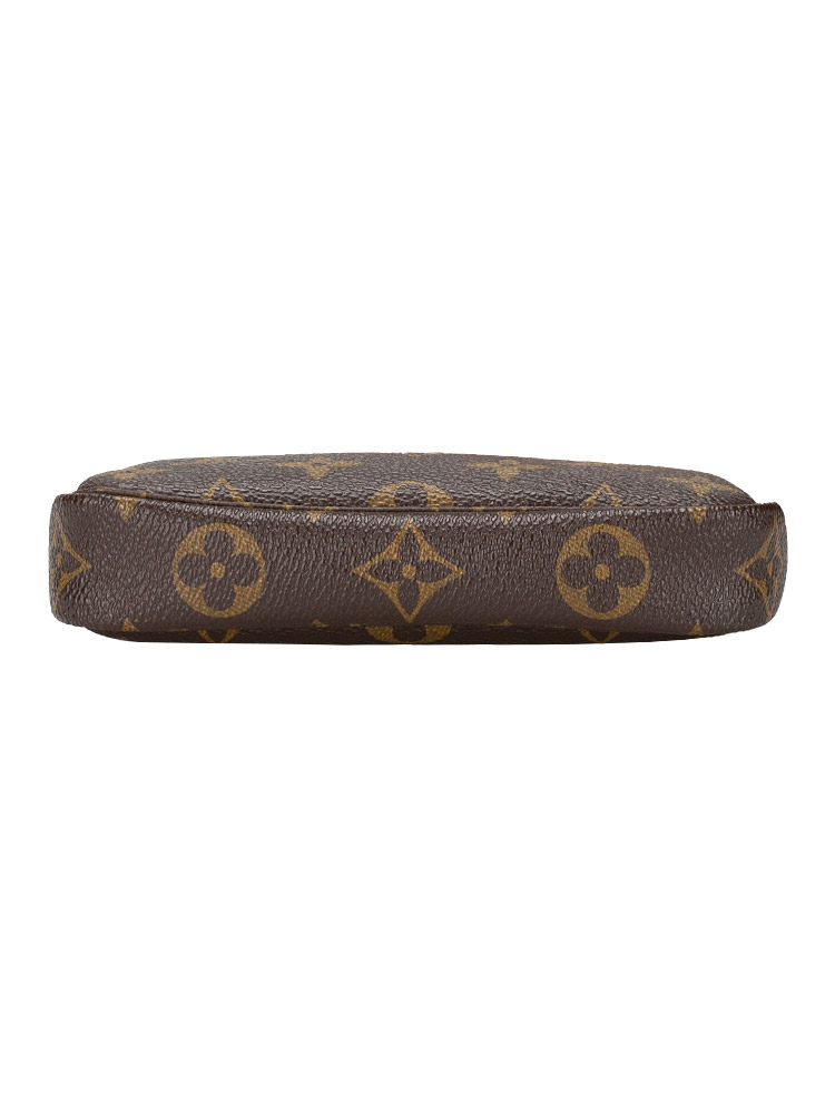 This pochette is crafted of Louis Vuitton Monogram coated canvas. It features with gold chain strap . The top zipper opens to a fabric interior.