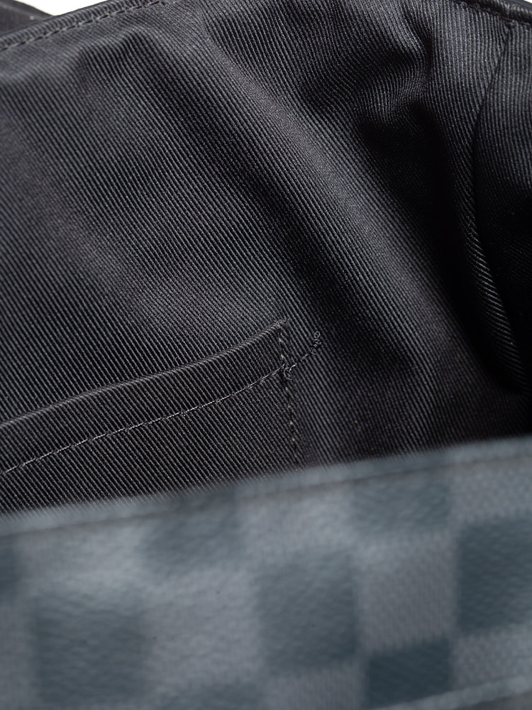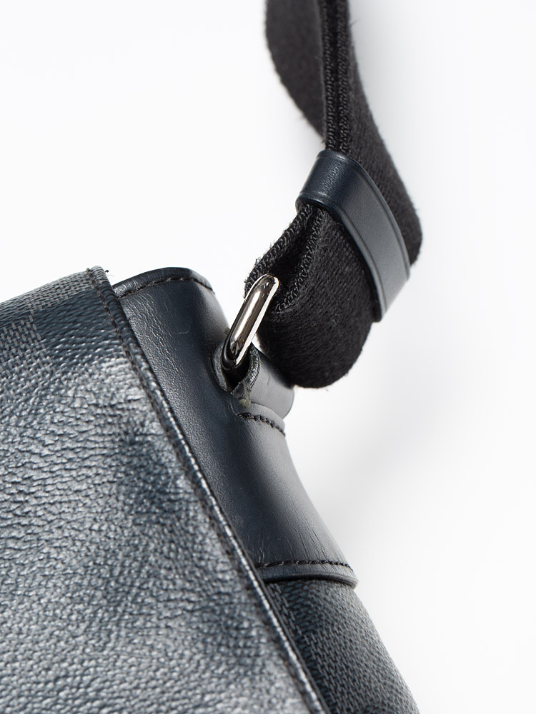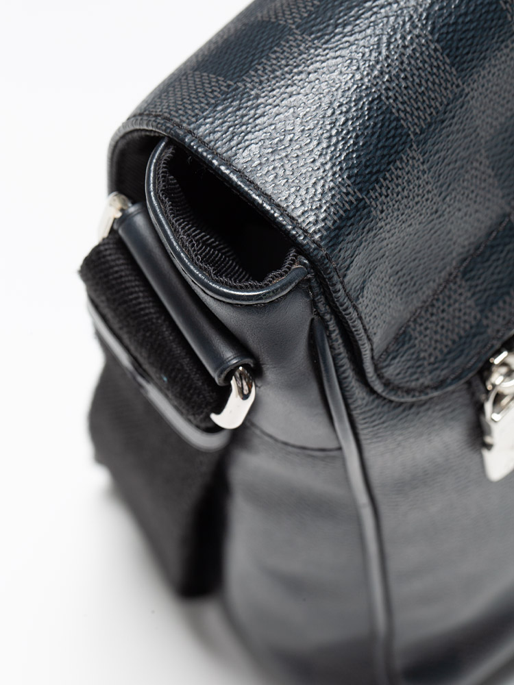 This bag is crafted of Louis Vuitton damier check coated canvas. Features with a canvas cross-body strap with silver adjustment hardware and links with a full facing flap, an exterior zipper pocket.