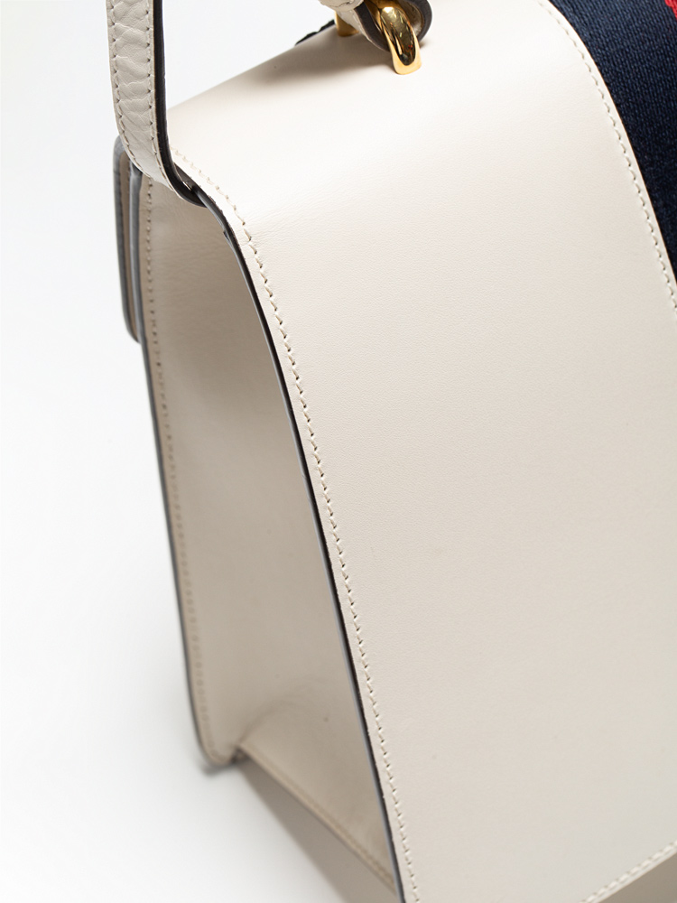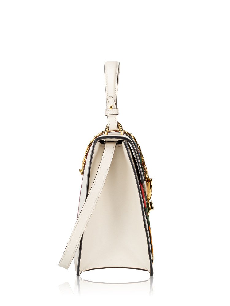 Calfskin Floral Sylvie Medium Top Handle Bag Off White