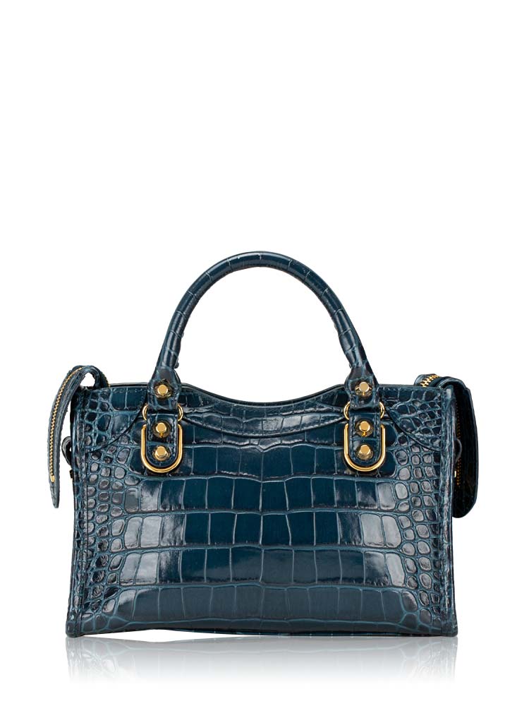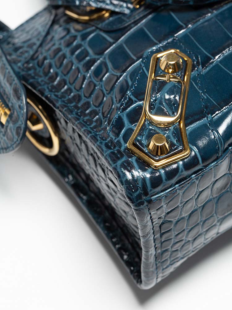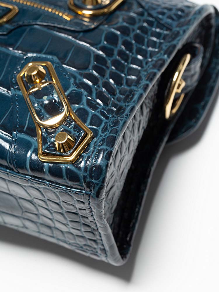 Croco Effect Gold Metallic Edge Mini City Bleu Minuit