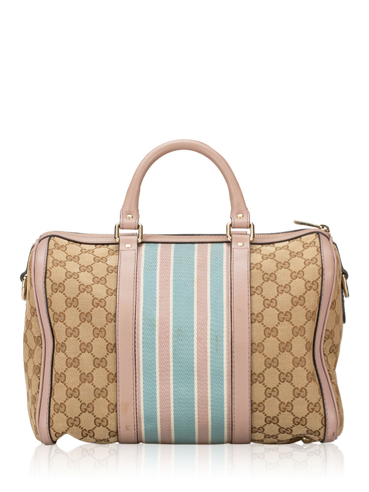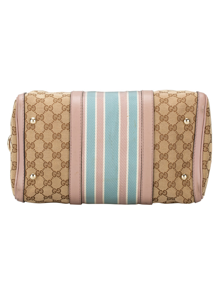 GG Canvas Vintage Web Medium Boston Bag with Strap Pink Blue