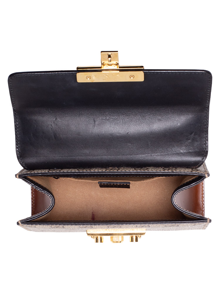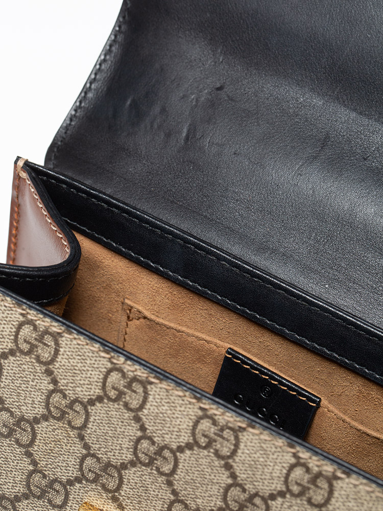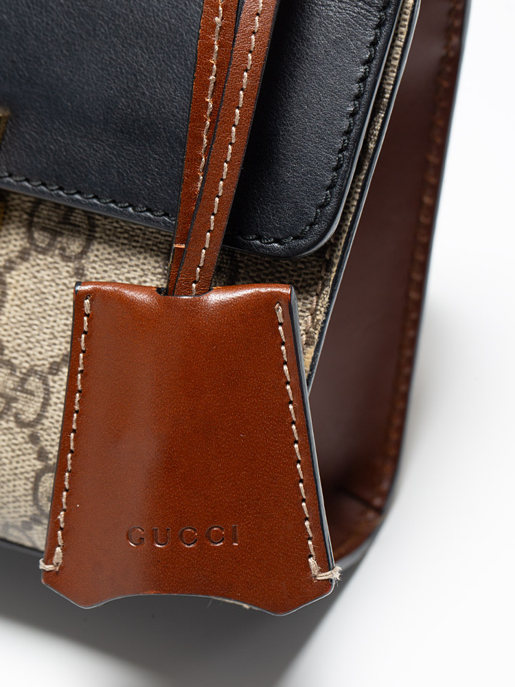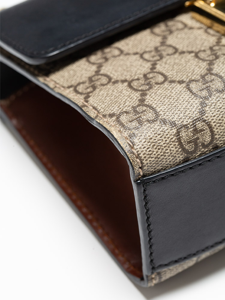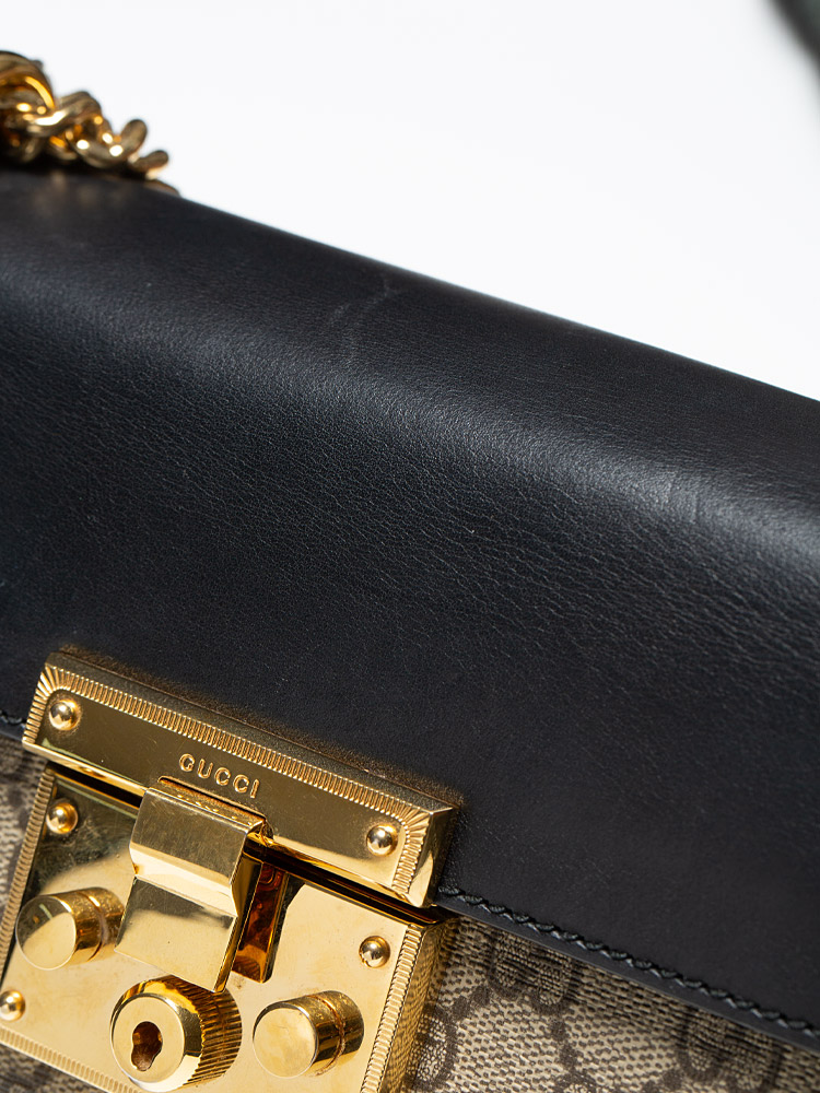 GG Supreme Padlock Small Shoulder Bag Beige Black Cuir
