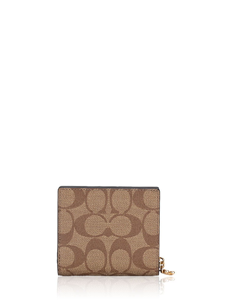 Made of signature coated canvas, the snap button opens to smooth leather and fabric lining with multiple pockets to stash your credit cards, bill receipt, also ID card. It also has an exterior coin pocket with C signature zipper.