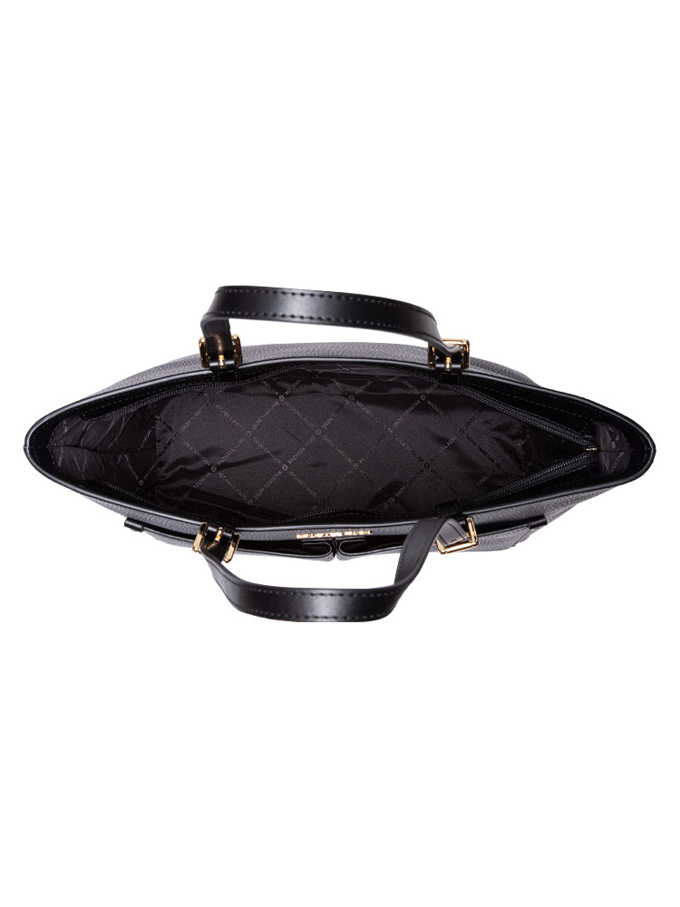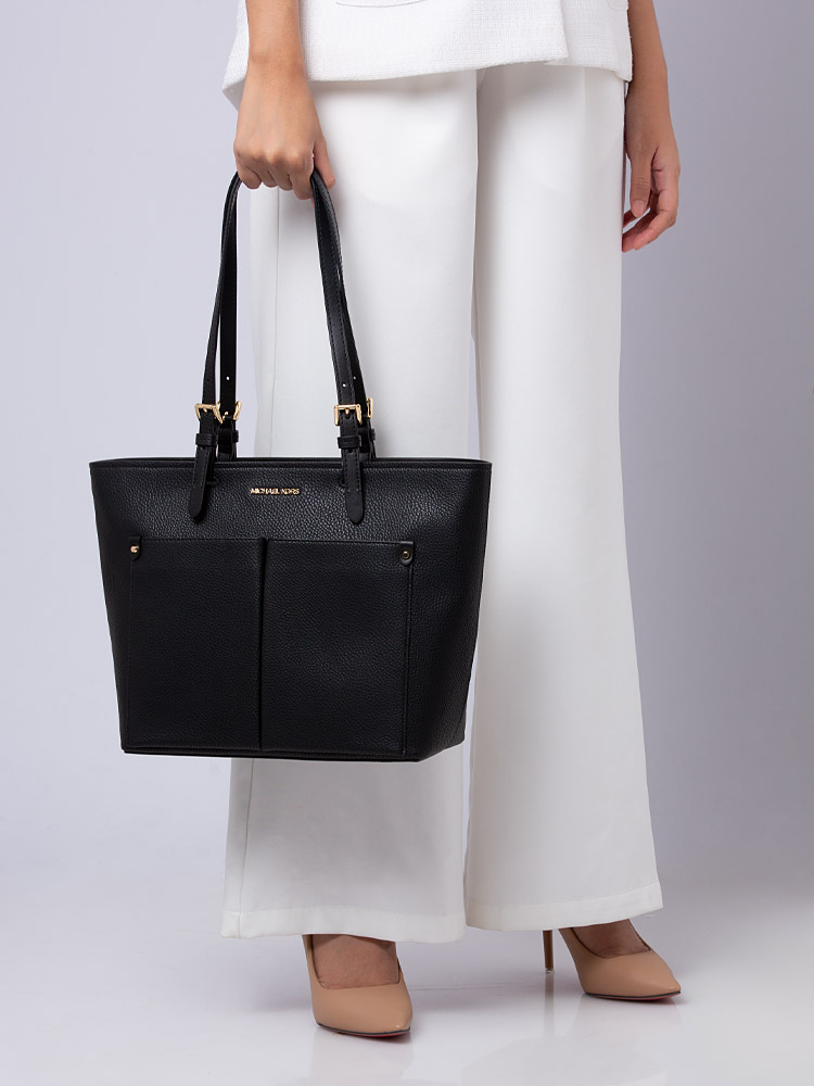 Jet Set Travel Leather Medium Double Pocket Tote Black