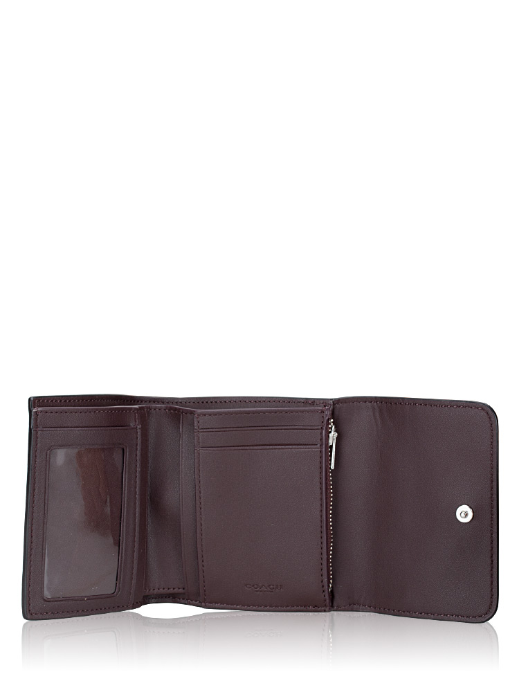 Made of signature coated canvas and smooth leather. The wallet features a button closure that opens to fabric and leather lining with two card slots, three slip pockets, ID window, one zip coin pocket, full-length bill compartment.