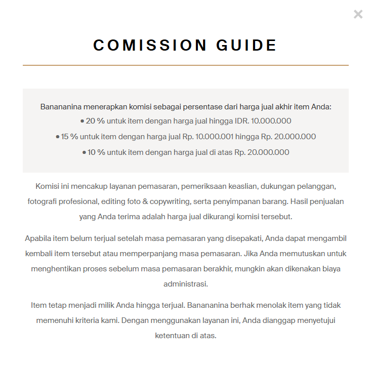 READ OUR COMMISSION GUIDE Banananina memudahkan Anda memasarkan produk fashion mewah